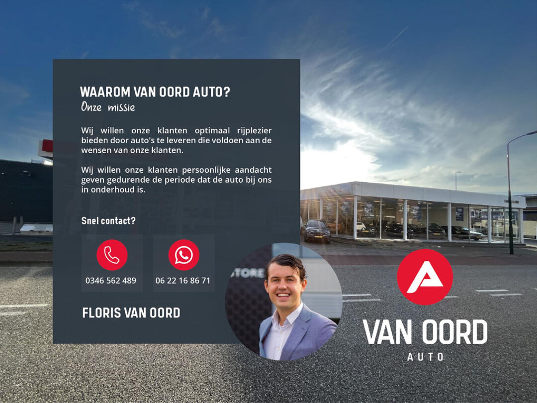De (optionele) aanvullende garantie van 12 maanden BOVAG biedt u als consument onder andere extra zekerheid. Vraag onze verkopers naar de voorwaarden of kijk op onze website www.vanoordauto.nl voor meer informatie.