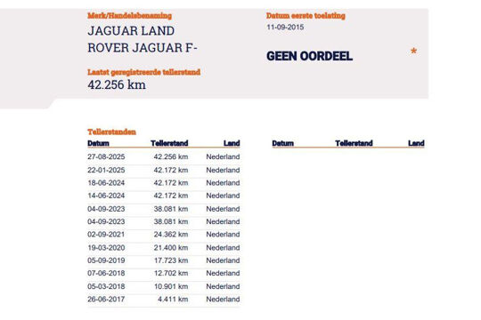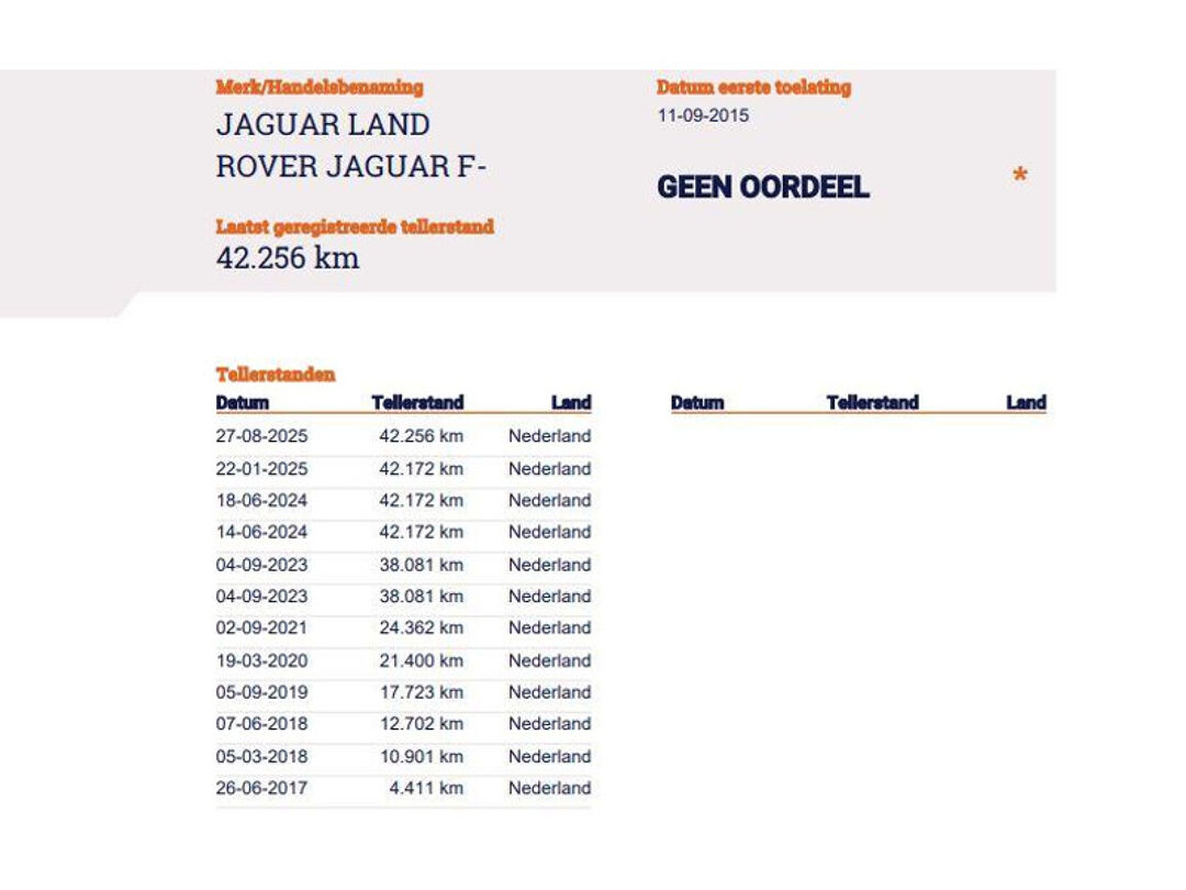 Laatst geregistreerde tellerstand RDW (27-08-2025): 42.256 km
