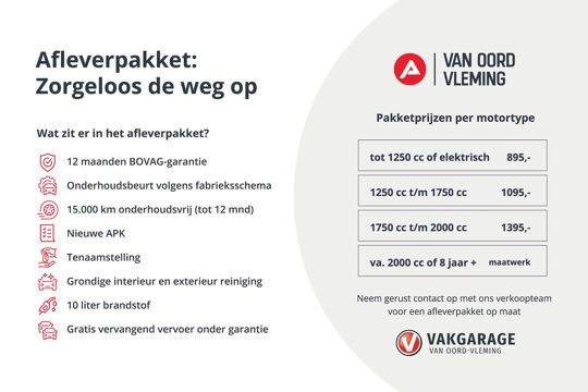De (optionele) aanvullende garantie van 12 maanden BOVAG biedt u als consument onder andere extra zekerheid. Vraag onze verkopers naar de voorwaarden of kijk op onze website www.vanoordauto.nl voor meer informatie.